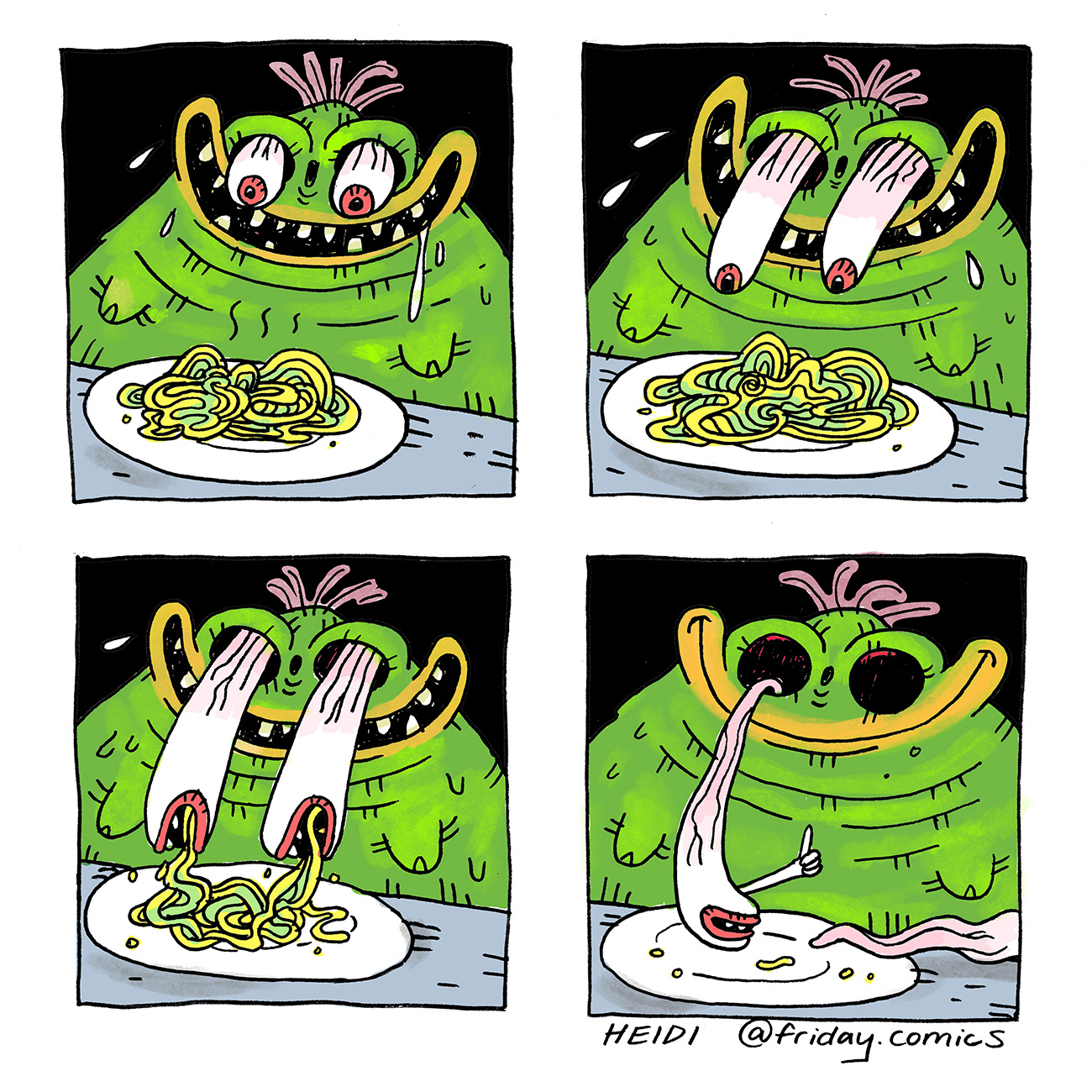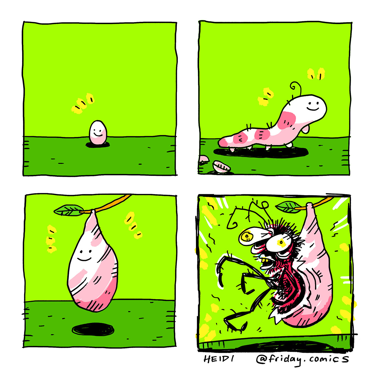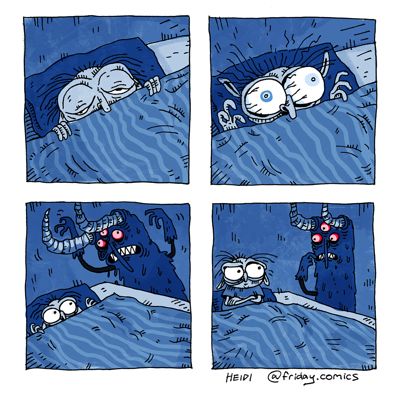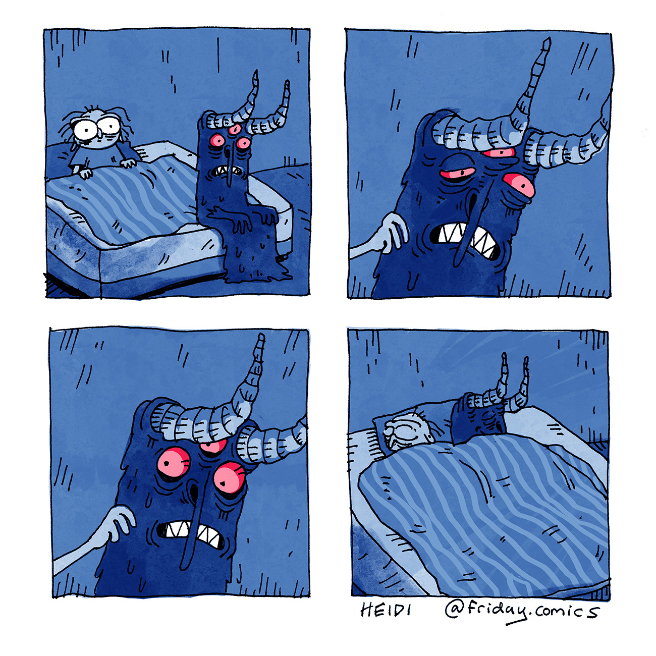 A series of four-panel comics about human struggles, vices, and the weird creatures inhabiting our internal and external world.