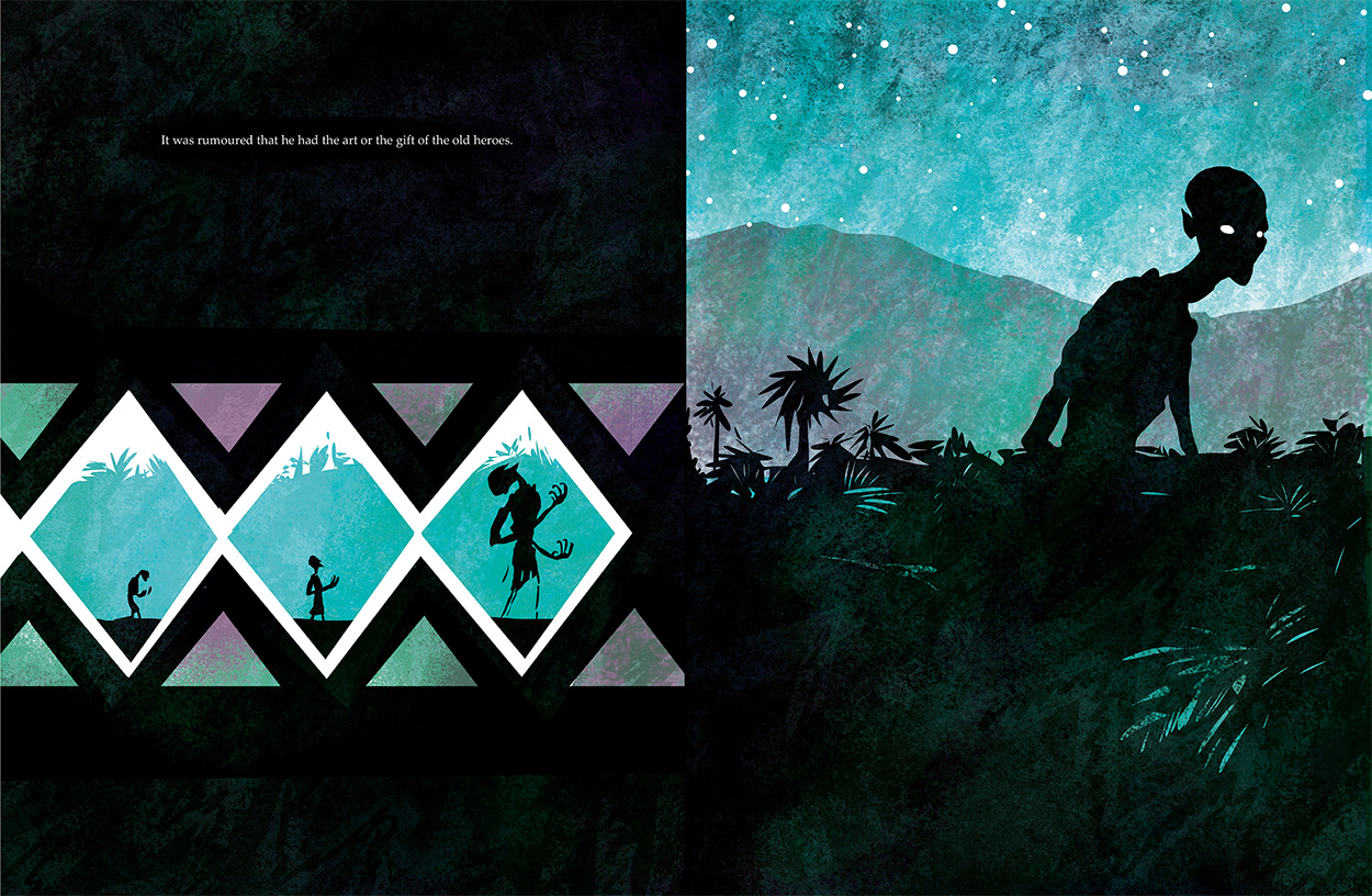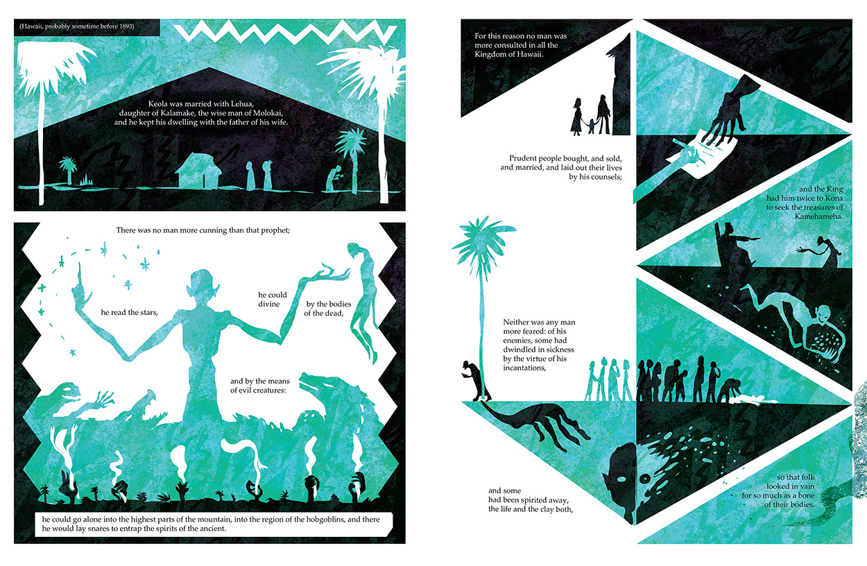 A graphic adaptation of the beginning of Robert Louis Stevenson’s story “The isle of Voices”. A part of a collaborative publication.