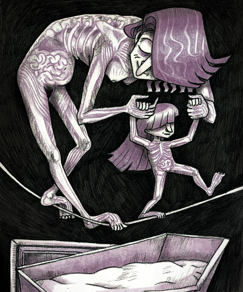 An illustration based on the autobiographical novel “I am, I am, I am: Seventeen Brushes With Death” by Maggie O’Farrell. Part of the “House Style” -project with Edinburgh College of Art and the Edinburgh Book Festival.